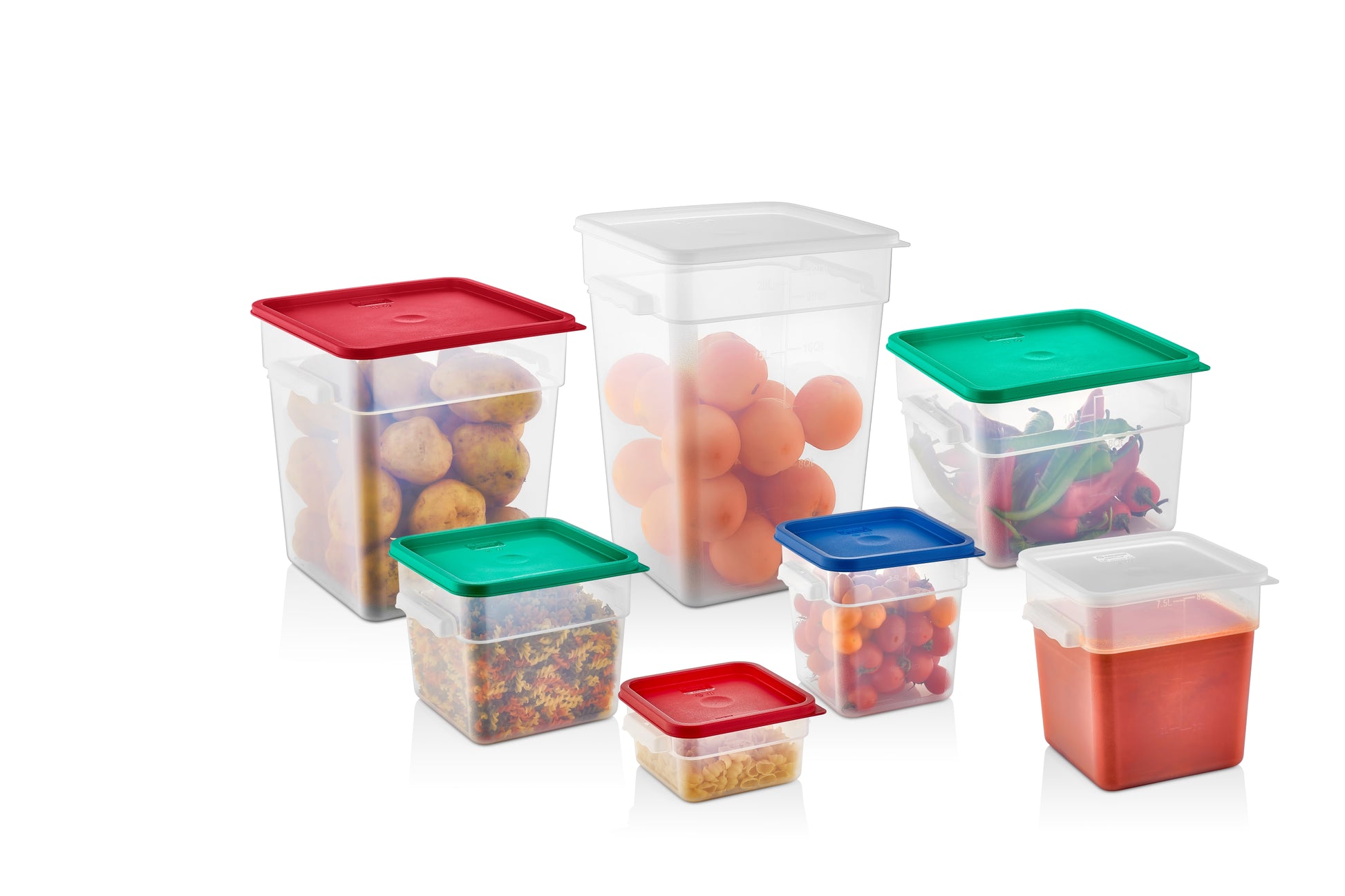 Die einheitliche Transparenz von Behälter und Deckel sorgt für Übersichtlichkeit und ein ästhetisch modernes Erscheinungsbild. Dank unterschiedlicher Größen lassen sich Lebensmittel aller Art effizient, platzsparend und hygienisch organisieren.